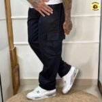 Calça Cargo Sarja Larga Masculina Skate Casual Bolso Lateral