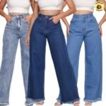 Calça Jeans Feminina Cintura Alta Wide Leg Com Bolso