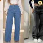 Calça Jeans Wide Leg Feminina Cintura Alta Pantalona Preto Black Marmo Liso 46
