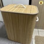 Cesto De Roupa Suja Bambu Dobrável Com Tampa Alças 72 Litros Bege Bambu