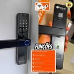 Fechadura Eletronica Digital Com Biometria Senha Kuantttum Delta Pro Tuya Wi-fi Cor Preta