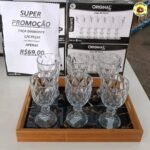 Jogo De Taças Diamante De Vidro 6 Peças 340ml Água Suco Cristal