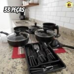 Jogo Panelas Antiaderente Dona Chefa Elegan Talheres 33 Peças Tampa Vidro Cor Preto
