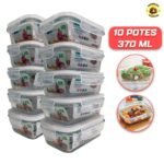 Kit 10 Potes de Vidro 370ml Hermético Marmita Fit com Tampa 4 Travas
