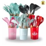 Kit 5/12 Jogo de Cozinha Silicone, Utensílios Suporte para Cozinheiro Cabo de Madeira MasterChef