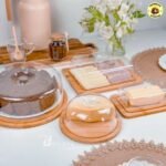 Kit Café da Manhã 4 ITENS Boleira + Manteigueira + Porta Frios Bambu + Queijo BAMBU Para mesa posta