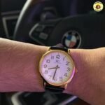 Relógio Masculino Dourado Saint Germain Correia De Couro Preto Caixa Dourada Fundo Branco 40mm Elegante Clássico