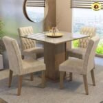 Sala Jantar Estofada Mesa Tampo Vidro 4 Cadeiras Madesa Anaju Rci Cor Rustic/crema/imperial Mdja0401387gsim